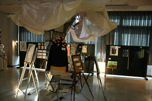 法政大学Ⅰ部美術研究会が年に二回催す構内展覧会のうちの一つです。大学からの助成金が関わっているらしく、部の存続に関わる大切な展覧会だとか。展覧会場である外濠校舎は去年完成されたばかりの綺麗な建物で、全面ガラス張りの点はメディア棟を彷彿させます。しかしメディア棟に比べて広く造られており、独自のギャラリースペースが設けてあるなど環境の良さを実感しました。んーうらやましす(^u^)
